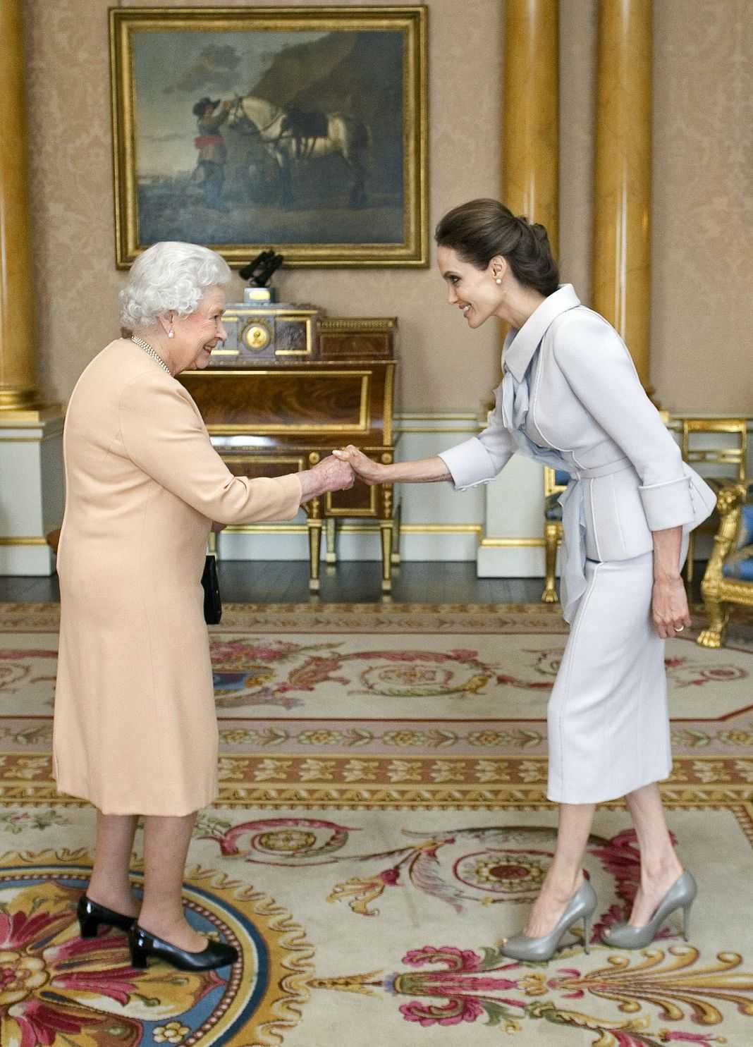 В октябре 2014 года королева Великобритании Елизавета II присвоила Анджелине Джоли титул дамы за ее гуманитарную деятельность, вручив ей Большой крест ордена святого Михаила и святого Георгия.