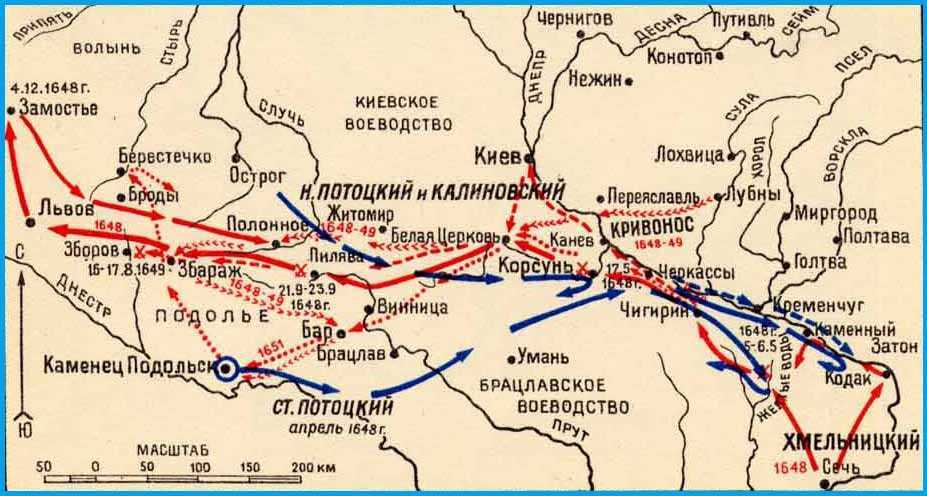 Карта восстания Богдана Хмельницкого