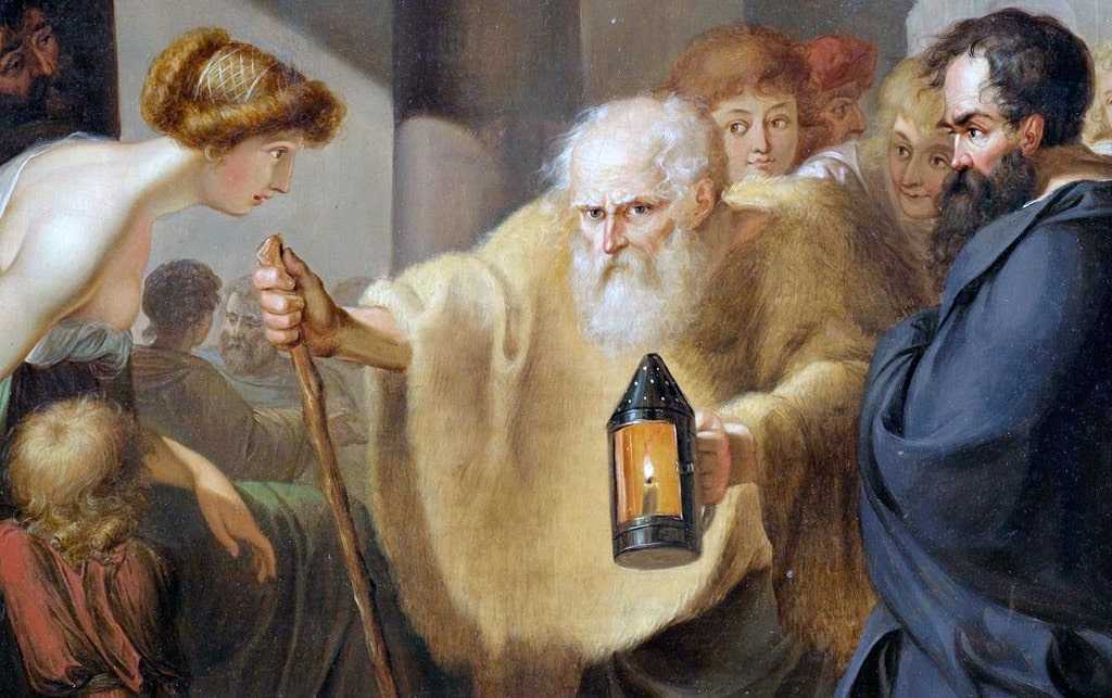 На полотне немецкого живописца Иоганна Тишбейна «Диоген искал человека», написанном в 1780 г., изображен античный седовласый старец с горящей свечой в закрытом фонаре. Он шествует по улице среди женщин и мужчин на фоне греческой статуи и египетской пирамиды.