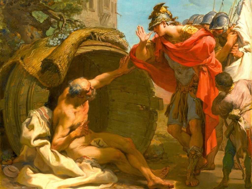 Плутарх рассказывает, что Александр долго ждал, пока сам Диоген придет к нему выразить свое почтение, но тот спокойно проводил время у себя. Тогда полководец был вынужден самостоятельно посетить философа.