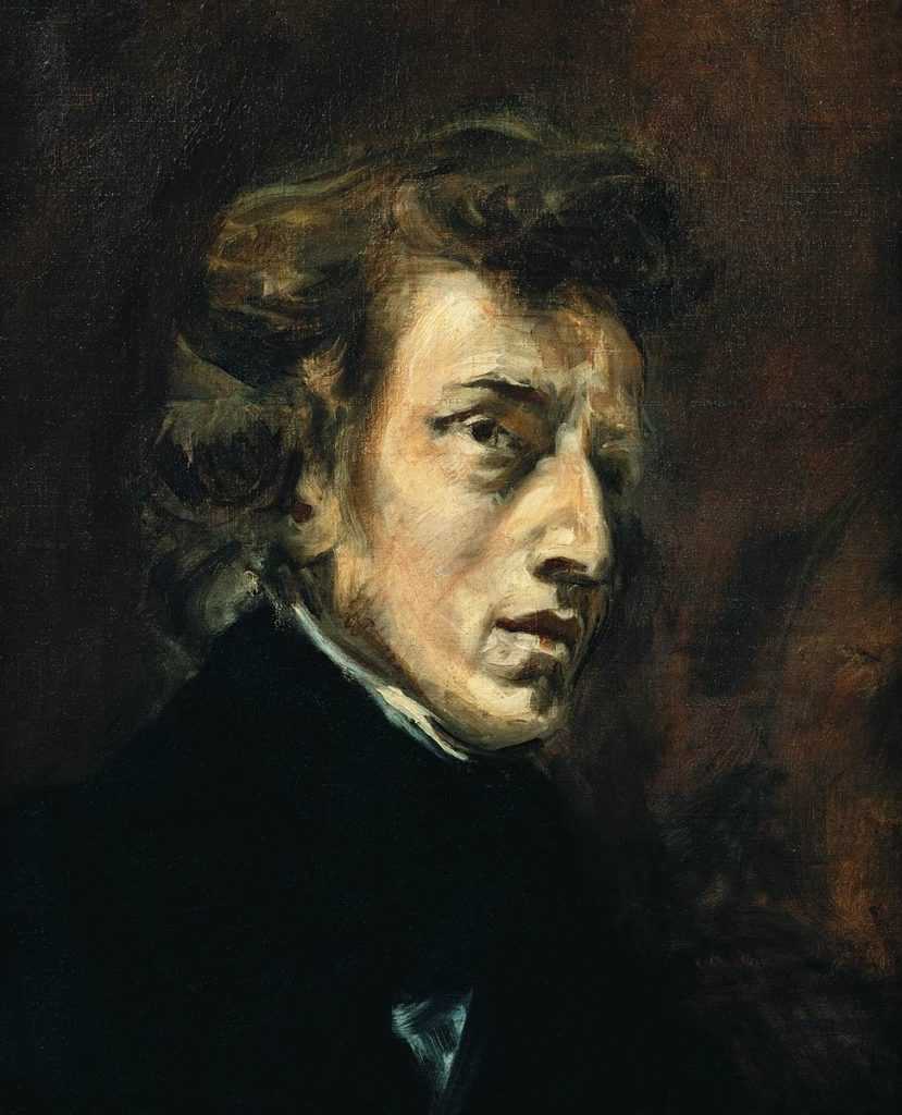Портрет Фридерика Шопена, 1838. Холст, масло, 45*38 см Лувр, Париж На известнейшем портрете Делакруа изображен польский пианист и композитор Фридерик Шопен (1810– 1849). Первоначально был создан двойной портрет — Шопена и его спутницы жизни, писательницы Жорж Санд (1804-1876), но в 1873 он был разделен. Вторая половина находится в Копенгагене. Делакруа создал множество набросков, документально свидетельствующих о постепенной кристаллизации уточнении характерных черт друзей — служителей муз.