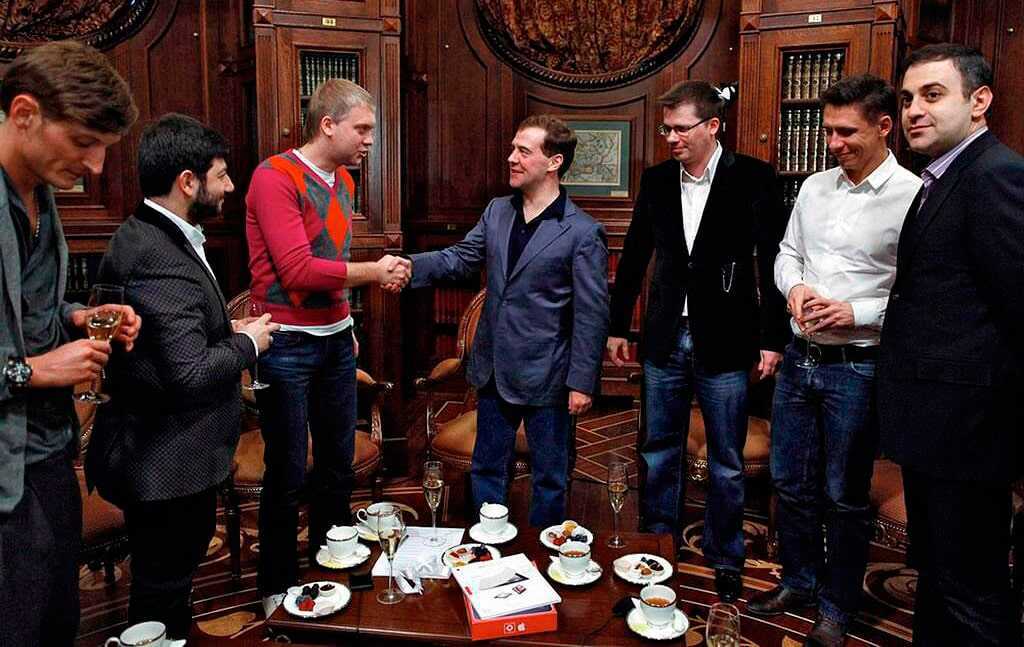 Гарик Харламов с коллегами на встрече с Дмитрием Медведевым