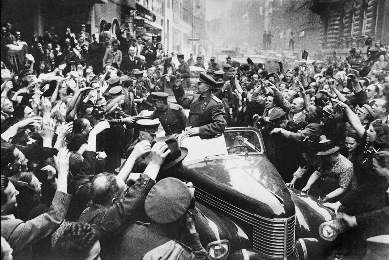 Жители Праги приветствуют маршала И.С. Конева. 14 мая 1945 г.