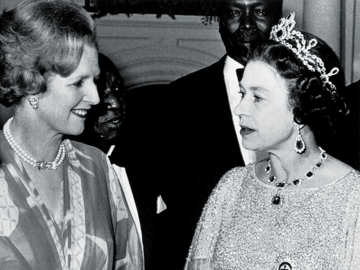 Embed from Getty ImagesЕлизавета II и Маргарет Тэтчер