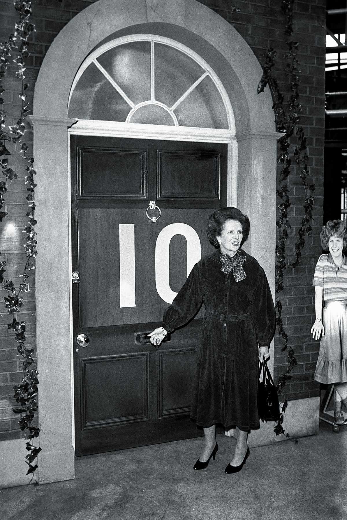 С премьер-министром Индии Индирой Ганди у Даунинг-стрит 10 в Лондоне, 22 марта 1982 г. Премьер-министр Великобритании  появилась в субботнем утреннем детском телешоу «Number 73», 6 января 1984 года.