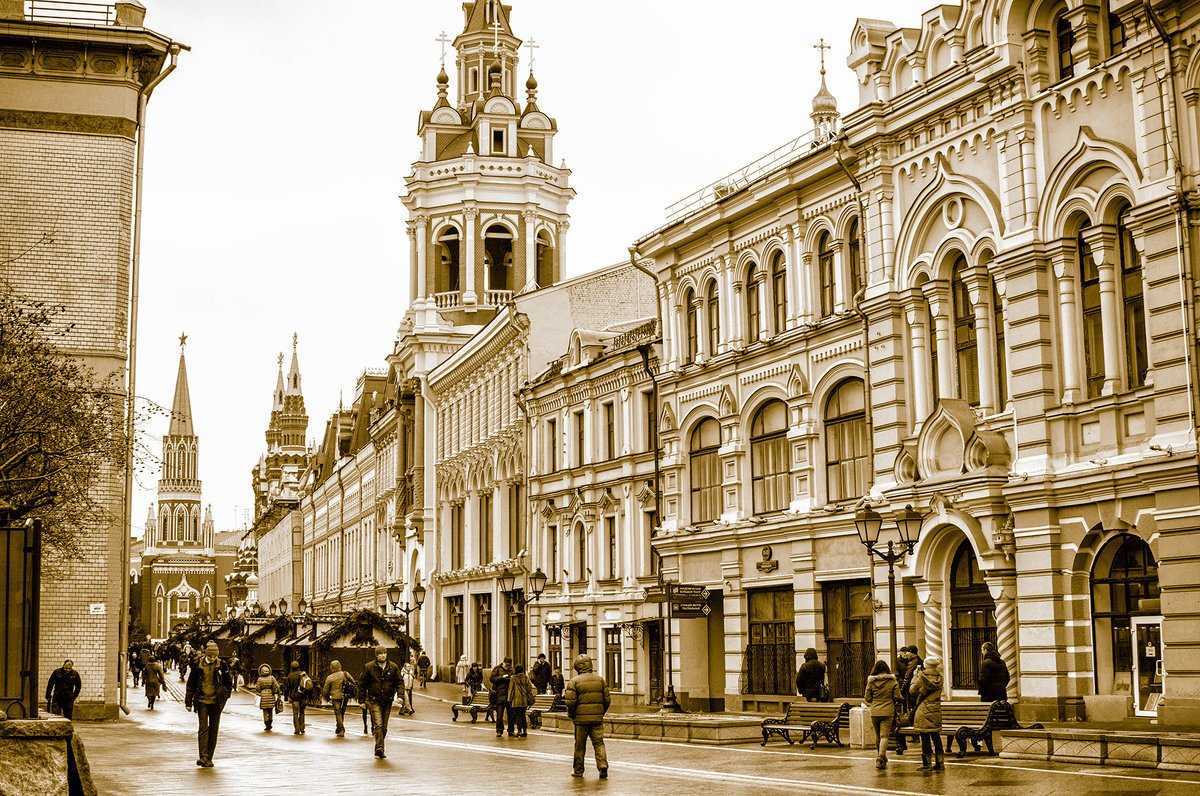 Место на Никольской улице, где находилась Славяно-греко-латинская академия. Заиконоспасский монастырь действует до сих пор