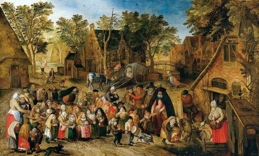 В картине Питера Брейгеля Младшего «Посещение крестьянского дома» (1611) пара богатых горожан приходит к многодетному крестьянскому семейству. Сюда, по всей видимости, отдан на воспитание их незаконнорожденный ребенок. Особо советую вам посмотреть на феноменальную картину художника «Перепись населения в Вифлееме», о которой я рассказывала после посещения выставки ГМИИ из Княжества Лихтенштейн.