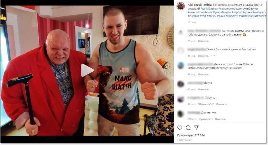 Руки-Базуки на своей странице в Instagram делился с подписчиками кадрами со съёмок «Брата-3».