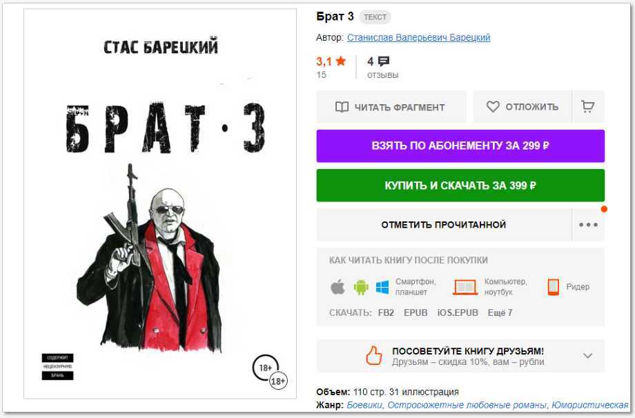 В итоге вместо фильма «Брат-3» Стас ограничился одноимённой книгой.