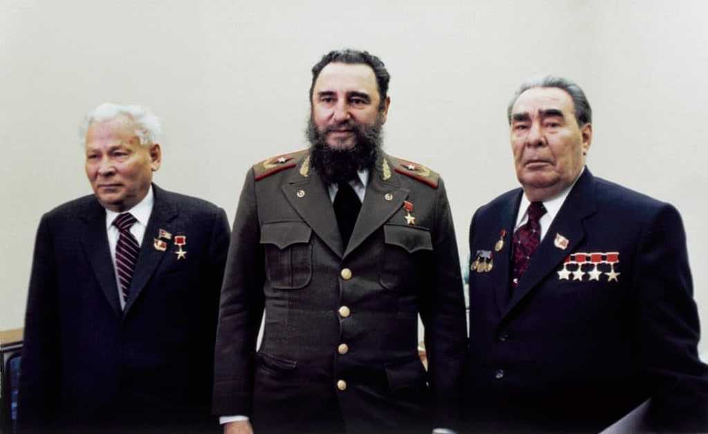 Константин Черненко, Фидель Кастро и Леонид Брежнев