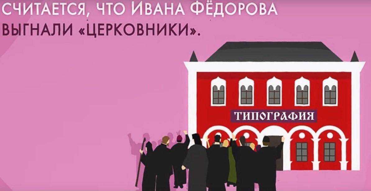 - Нападки духовенства на мастерскую и ее поджог. Об этом писали сам Иван и английский дипломат того времени. Однако версия вызывает некоторые сомнения: например, специалисты отрицают сожжение мастерской, поскольку Федоров смог вывезти инструменты. Возможно, речь шла о прошлой, «анонимной» мастерской. Причины для вражды также называют разные. Дипломат считал, что священники не хотят обнаружить собственное невежество. Другой вариант выглядит более убедительно: переписывающие вручную книги монахи начали терять деньги, что вызвало их недовольство.