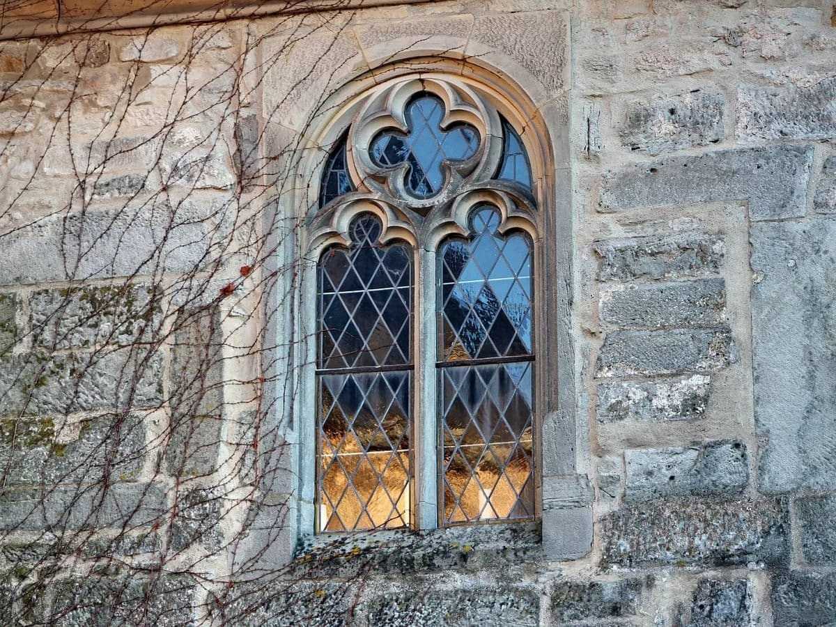 В средневековые времена стеклянные панели часто изготавливали методом коронного стекла. Кусок расплавленного стекла раскатывался, выдувался, расширялся, сплющивался и, наконец, вращался в диск, а затем разрезался на стекла. Листы были толще к краю диска и обычно устанавливались так, чтобы более тяжелая сторона находилась внизу.