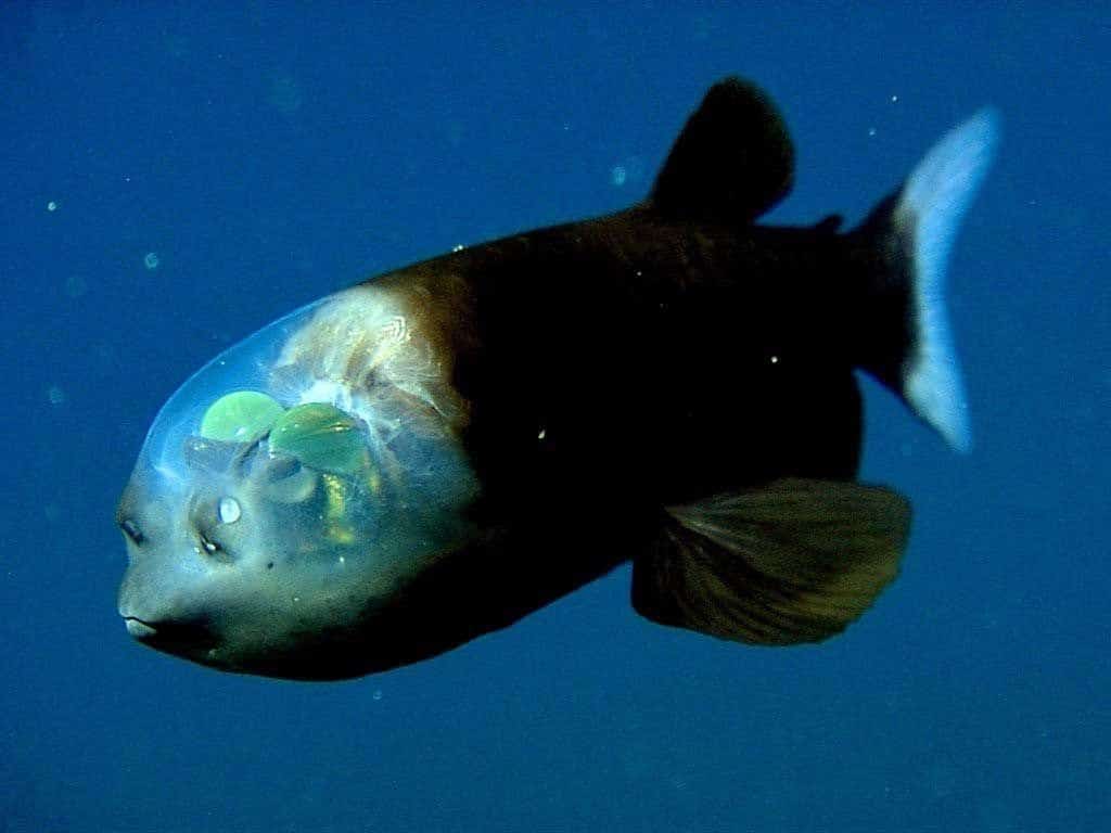 Среди удивительных обитателей Марианской впадины неподдельный интерес к себе вызывает необычная рыба под названием малоротая макропина. Она награждена природой прозрачной головой. Глаза рыбы, расположенные глубоко внутри прозрачного купола, могут вращаться в разные стороны. Это дает возможность бочкоглазу, не двигаясь с места, осуществлять поиск во всех направлениях даже в условиях тусклого и рассеянного света. Расположенные в передней части головы ложные глаза на самом деле являются органами обоняния.