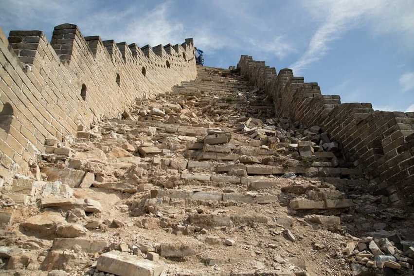 Китайская стена даже использовалась, как дорога. По своей структуре она неоднородна. Имеет разную высоту, граничит с горными ущельями и возвышенностями. Высота ее ступеней в некоторых местах достигает 30 см. Иные ступени имеют высоту всего 5 см. Подниматься на Китайскую стену довольно удобно, но спуск может стать рискованным приключением. И все из-за такого устройства ступеней.