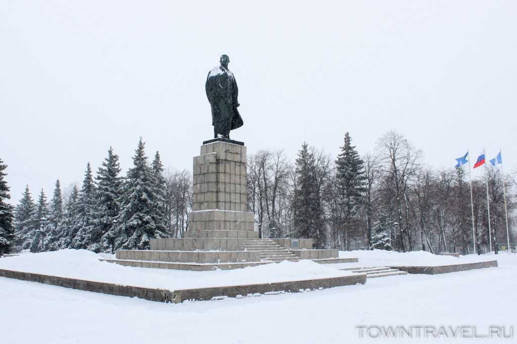 Памятник В. И. Ленину, родившемуся в Симбирске, проведшему здесь детские и юношеские годы, остается знаковой достопримечательностью города, переименованного в честь вождя мирового пролетариата, несмотря на любые изменения исторической конъюнктуры. Монумент выглядит действительно величественно. Для создания 6,5-метрового скульптурного воплощения образа Ильича, понадобилось более 13 тонн бронзы. Статуя помещена на массивный постамент из серо-розового гранита, имеющий 7,8 м. в высоту. Автором памятника является один из выдающихся скульпторов Советской эпохи – М. Манизер.