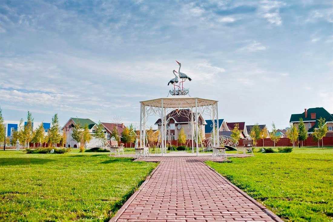 На зеленой территории расположены аквапарк, детский городок с аттракционами, в окружении голубых елей возвышается нарядная часовня. Достопримечательность парка – собственный водоем. Небольшой, рукотворный пруд славится комфортным песчаным пляжем и множеством развлечений. Летом это купание и водные забавы, зимой – катание на коньках по качественному льду.