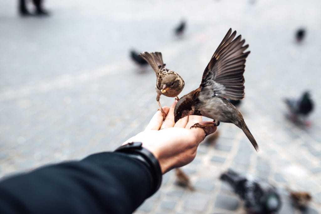 Воробьи настолько приспособились к людям, что даже не боятся есть с рук