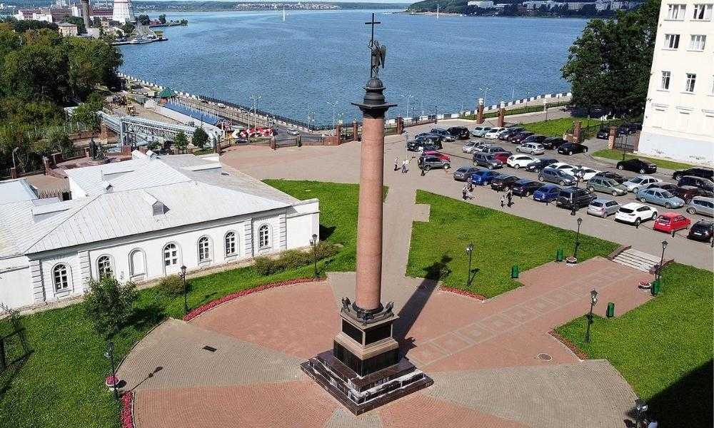 Этот красивый памятник находится на берегу Ижевского пруда. Колонна была построена в память о погибшем князе Михаиле Павловиче, в 1852 году. Память князя было решено почтить, потому что именно он отвечал за работу промышленных предприятий и производство оружия, которым всегда славился Ижевск.