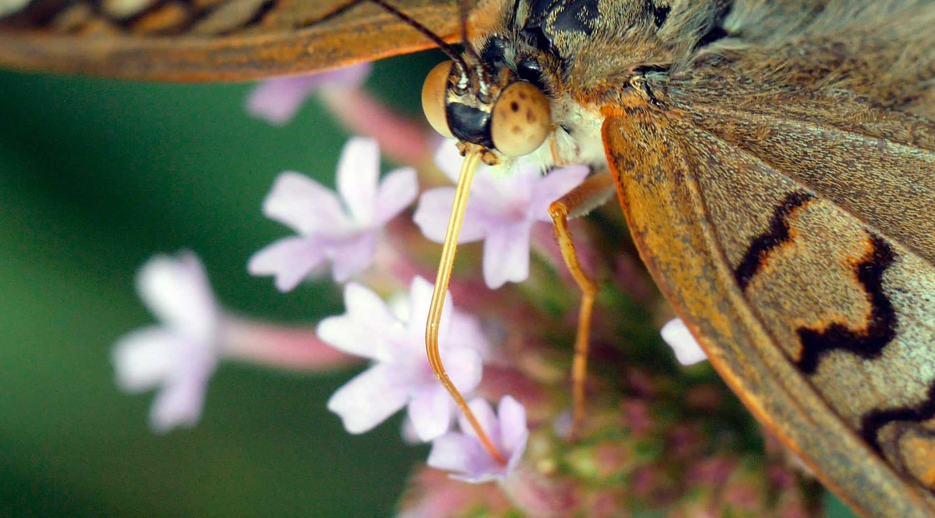 Чем питаются бабочки? Пыльца и нектар цветущих растений – вот главный рацион бабочек. Некоторые виды бабочек не прочь полакомится соками деревьев и перегнившими фруктами. Есть и такая интересная бабочка как бражник мертва голова, она примечательна тем, что любит залетать в улей к пчелам и лакомится их медом.