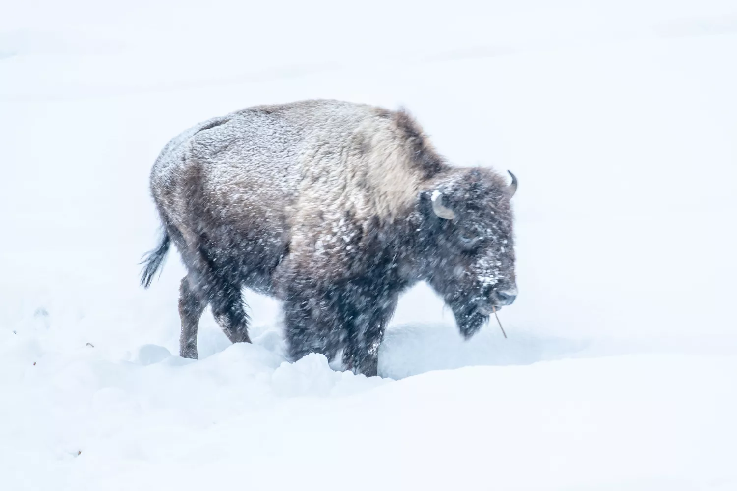Уникально то, что бизоны не сжигают лишние калории, чтобы согреться при отрицательных температурах. Толщина их шерсти изолирует их от суровой зимней погоды благодаря двум слоям волос и толстой шкуре. Грубый внешний слой служит защитой от холода и влаги. Внутренний слой состоит из тонких волокон, создавая изоляцию, которая удерживает воздух и тепло. У бизонов в 10 раз больше волос на квадратный сантиметр, чем у домашнего скота. Их шерсть настолько эффективна против холода, что снег остается на бизонах, не тая. ()