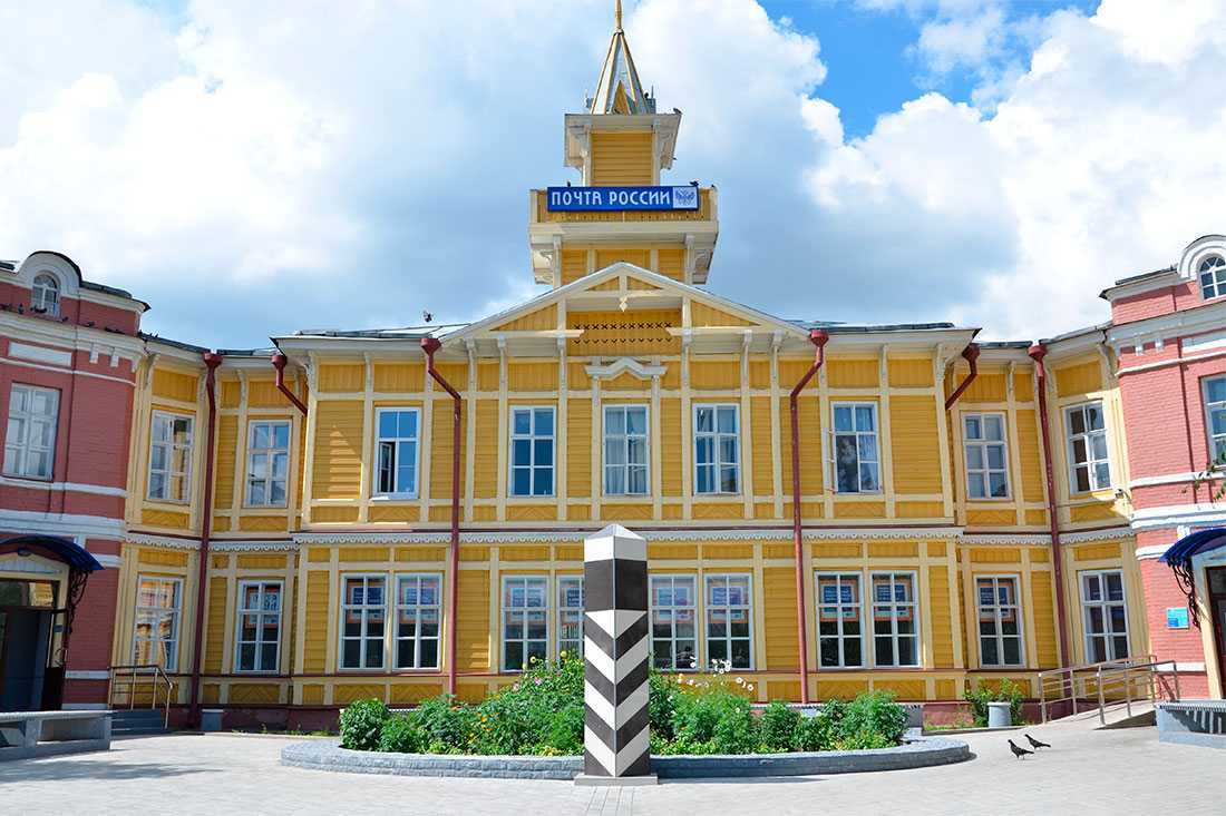 Зачем посещать. Читинский Почтамт – историческая и архитектурная достопримечательность города. Центральная часть здания – деревянная, ее украшает остроконечная башня. По бокам пристроены два симметричных крыла с каменными тамбурами. Фасады деревянной части почтамта выкрашены в яркий желтый цвет и обрамлены светлыми декоративными деталями. Стены кирпичных тамбуров имеют розоватый оттенок, дополнены белым декором.