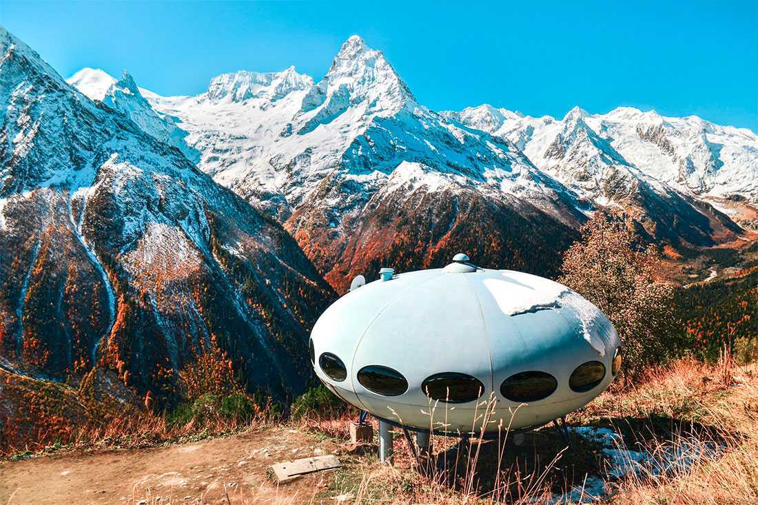 Хотите побывать внутри инопланетного корабля? Если вы собираетесь отдохнуть в Домбае, у вас будет такая возможность. В 1979 году там, на склоне горы Мусса-Ачитара, на высоте 2260 метров, построили мини-отель в форме летающей тарелки.