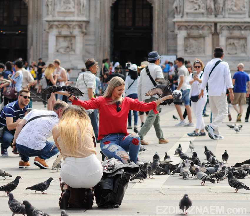 Не забудьте заранее взять с собой немного… хлеба, чтобы на площади Дуомо перед Миланским Собором сделать такие вот фотки: