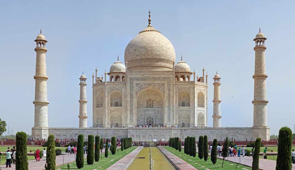 Романтический памятник, символ вечной любви и великолепное сооружение, перед которым в оцепенении замирают люди, – дворец Тадж Махал, внесенный в список семи новых чудес света. Мечеть возведена потомком Тамерлана Шах-Джаханом в память об умершей супруге, которая скончалась в родах, производя на свет 14-го ребенка. Тадж-Махал признан лучшим образцом Великих Моголов, включающим в себя арабский, персидский и индийский архитектурные стили. Стены сооружения выложены из полупрозрачного мрамора и инкрустированы самоцветами. В зависимости от освещения камень меняет оттенок, становясь на заре розовым, в сумерках – серебристым, а в полдень – ослепительно белым.