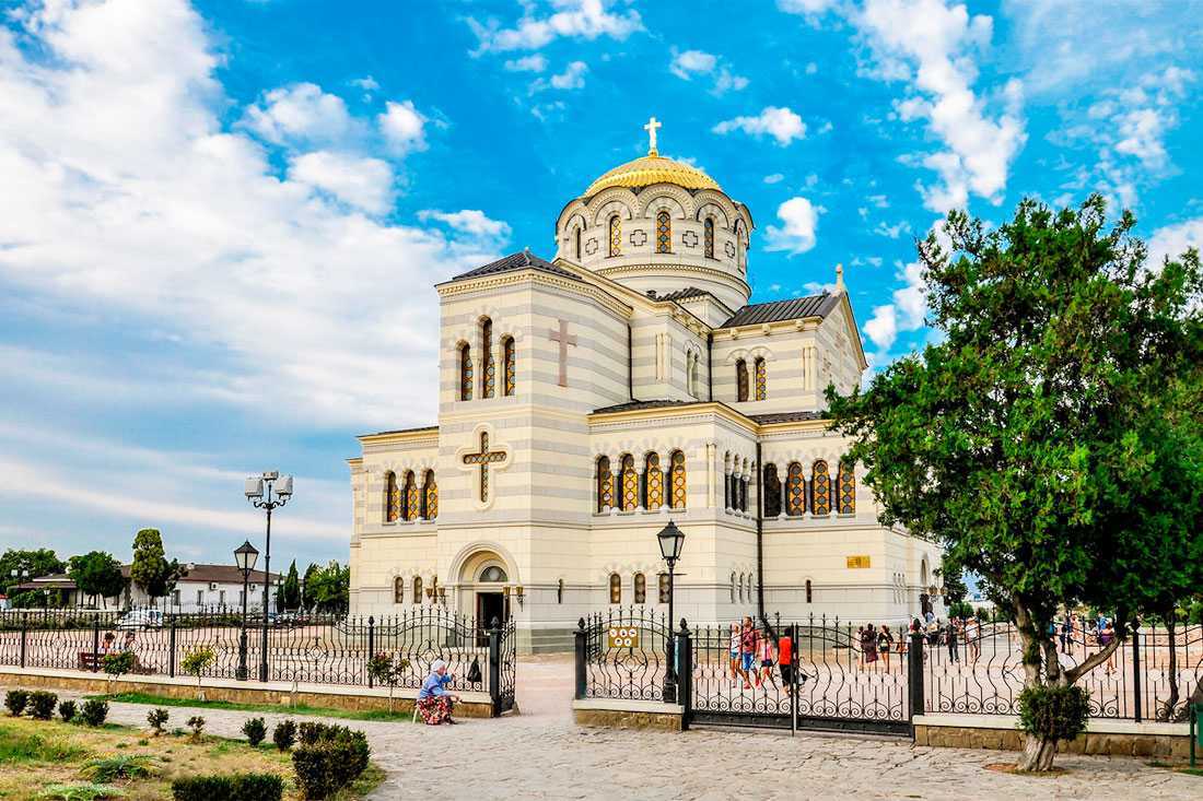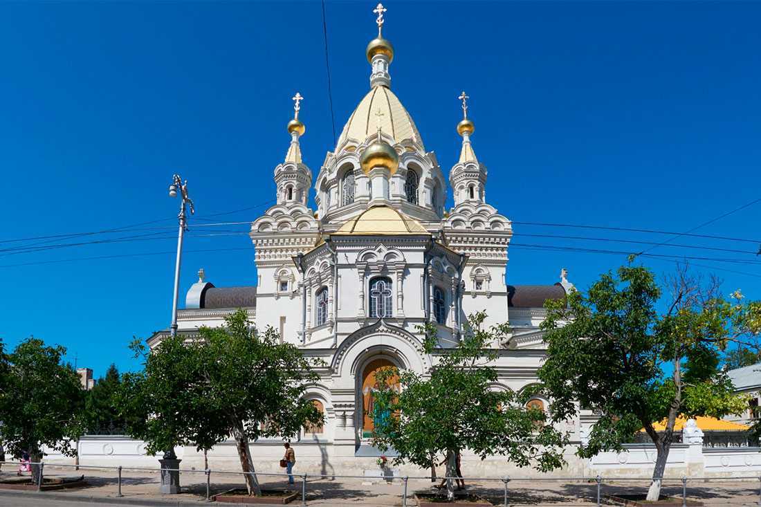 Собор, расположенный на холме, построен в XIX веке и выдержан в традициях византийской храмовой архитектуры. Однокупольное сооружение из инкерманского камня – не только одна из городских святынь, но и усыпальница адмиралов времен Крымской войны: Нахимова, Корнилова, Истомина и других. Такое назначение достопримечательности сказалось на внутреннем убранстве: вместо привычных икон на стенах – мраморные стелы, на которых начертаны имена военных героев. Среди реликвий собора – ценные образа Богоматери.