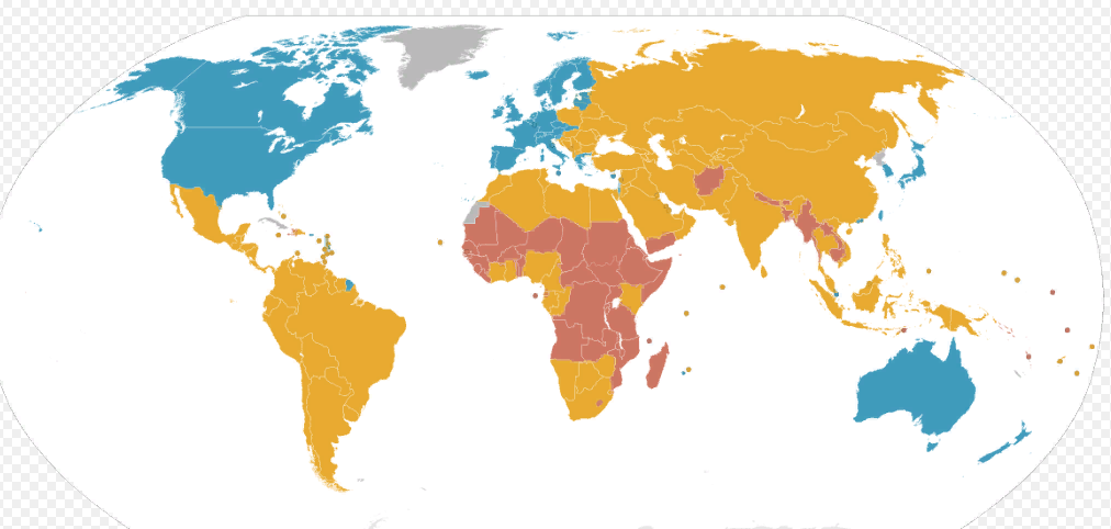 Как видно из карты, к развитым странами являются почти все европейские страны, некоторые азиатские и арабские страны, а также Объединенные Арабские Эмираты, США и Канада. Страны с низким уровнем жизни и слабой экономикой в основном расположены в Африке. Примерно половиной мирового ВВП обладают страны, отмеченные желтым и красным цветом.