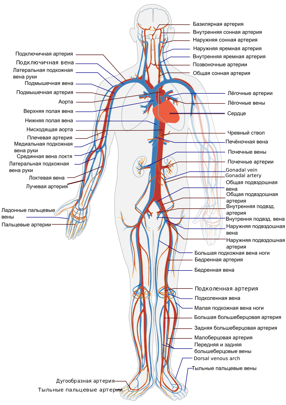 Схема кровообращения человека. Изображение: Wikimedia Commons