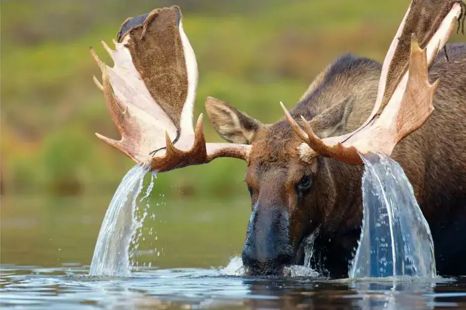 - У лося нет передних верхних зубов. Это пространство позволяет им засасывать в рот маленькие морские растения.