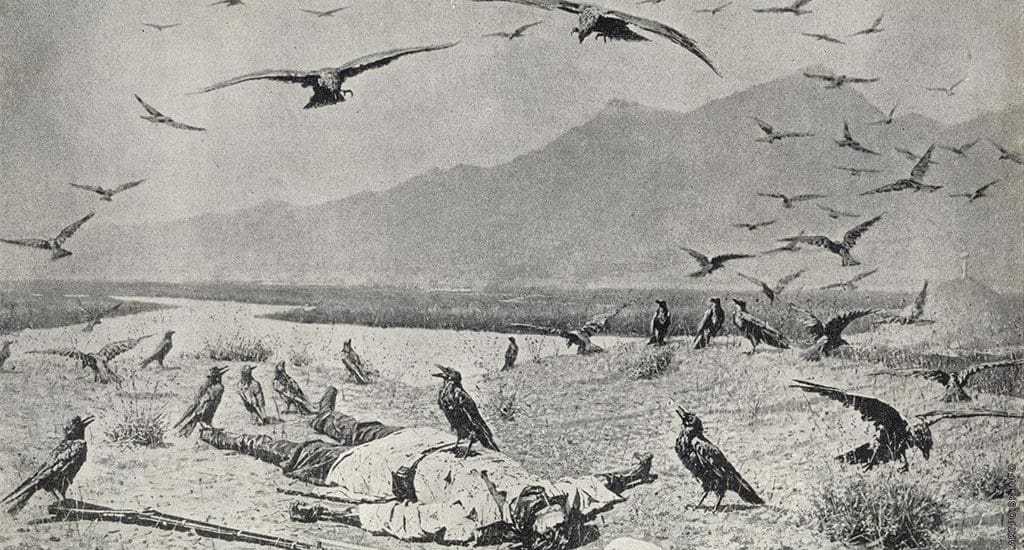 В христианских и других мифологиях черные вороны часто ассоциировались с потусторонним миром. Виной тому их устрашающий внешний облик и питание, поскольку эти пернатые любят поедать падаль, не брезгуя и человеческими останками. На поле после битвы можно было наблюдать стаи черных птиц, объедающих павших воинов.