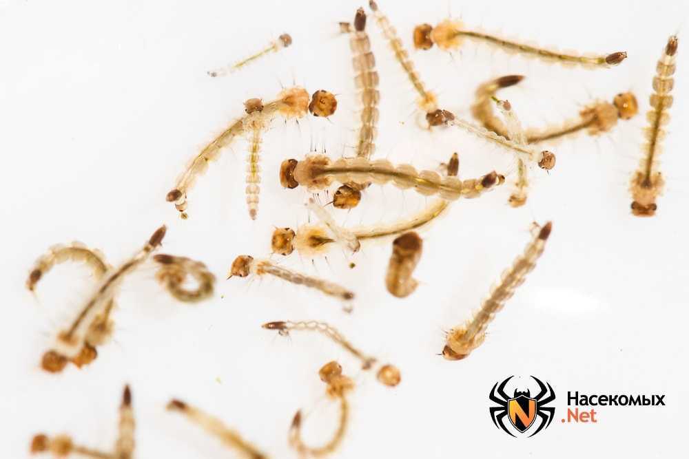 Для кладки яиц самки выбирают водоемы, лужи или любые влажные места, где вылупившиеся личинки могут питаться различными микроорганизмами и пищей растительного происхождения. Начальный размер личинок составляет не более 1 мм, а ее развитие занимает порядка двух недель. За время своего развития будущие кровопийцы увеличиваются в 10 раз, у них отсутствуют конечности и крылья. Для обеспечения нормального роста насекомое несколько раз линяет, сбрасывая свой экзоскелет около четырех раз. На заключительном этапе происходит окончательное увеличение размеров и развитие более сложной системы внутренних органов, после чего паразиты превращаются в куколку. Развитие комара из куколки во взрослую особь длится всего лишь 1-2 дня, поэтому если в помещении течет сантехника и есть влажные места, не стоит задаваться вопросом, откуда дома появляются комары.