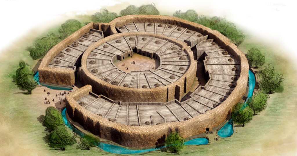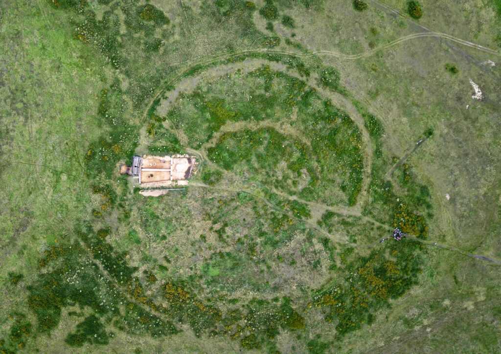 Два круга, один из которых находится внутри другого – это валы, оставшиеся на месте стен древнего поселения.