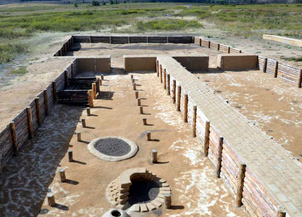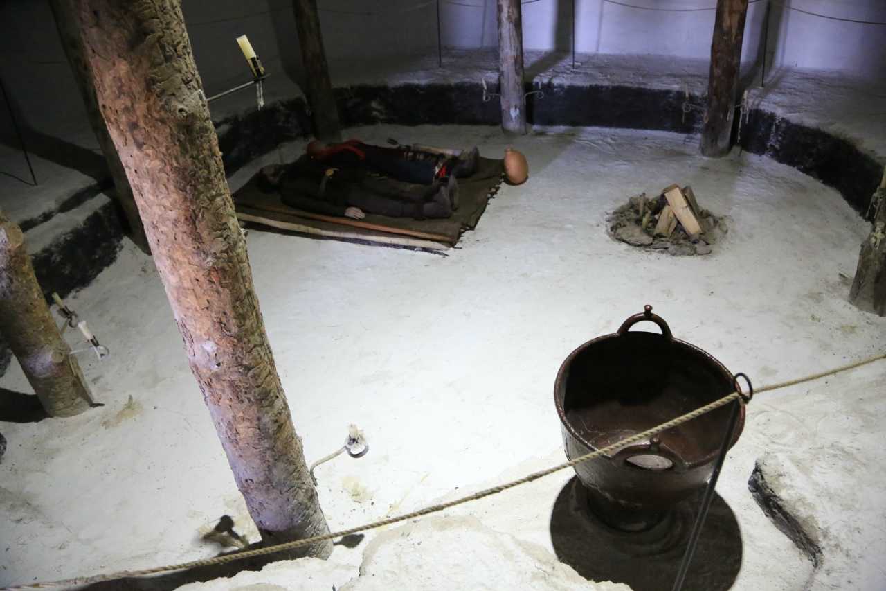 Каждое жилище – это округлая полуземлянка с грунтовыми стенами и бревенчато-дерновым куполом, в центре которого оставлено дымовое отверстие.