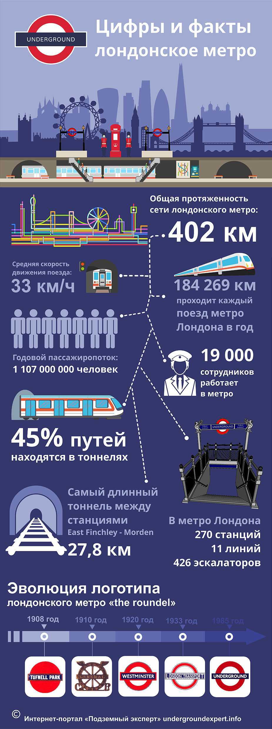 Лондонский метрополитен является одним из крупнейших во всем мире, занимает четвертое место после сеульского, пекинского и шанхайского. Он состоит из 11 линий общей протяженность 402 км, при этом 45% из них проходят под землей. В Лондоне есть 270 станций метро.