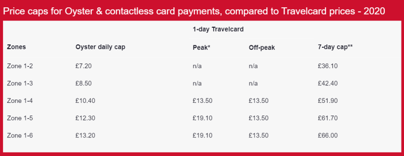 Ниже приведены тарифы Oyster card/бесконтактной карты по сравнению с однодневным бумажным проездным Travelcard (стоимостью от £13,50).