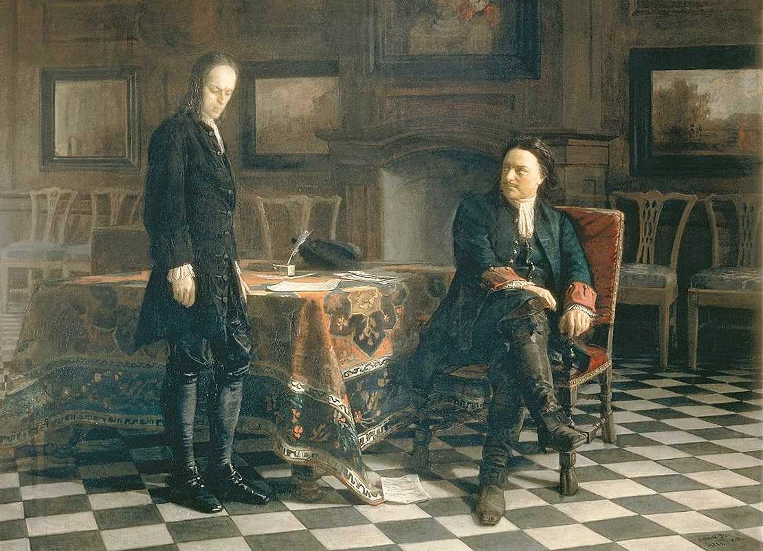 Пётр I допрашивает царевича Алексея. Ге Н. Н., 1871