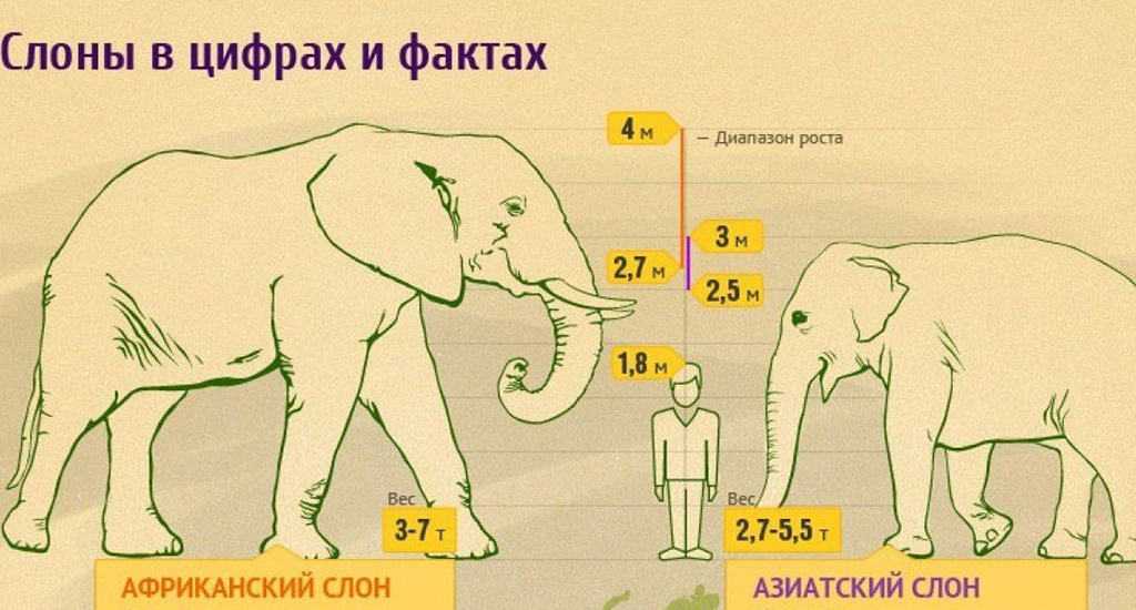 В холке Африканский слон достигает 4 метров и весит до 7,5 тонн. Индийский слон весит немного меньше – до 5 тонн, при росте – 3 метра. В Индии и Таиланде этих животных почитают, считая священными.