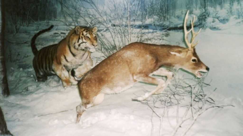 Изюбри, дикие кабаны, а также пятнистые олени – главная часть рациона питания зверя. Для полноценного существования особи в год им необходимо более 50 копытных.