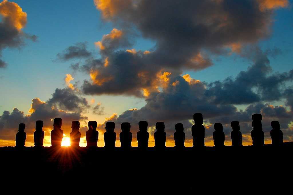 Статуи Моаи это статуи которые были высечены каменными молотками из спрессованного вулканического пепла. Загадки этих статуй заключаются в том, что по легенде они самостоятельно хаотично перемещались по острову Пасхи, потому что они разбросаны по территории всего острова. Чтобы было понятно, Моаи имеют различные размеры, которые начинаются с цифры в 3 метра и заканчиваются около 21 метра высотой. Вес некоторых статуй достигает 80 тонн, что конечно довольно сомнительно. Мистики пишут, что эти статуи мало того что передвигались самостоятельно, но расположены соответственно с межгалактическим равновесием. Некоторые выдвигали теории воздвижения статуй инопланетянами. Но правду на все вопросы открыла экспедиция норвежского ученого Тура Хейердала с его командой в 60-ых годах прошлого века. Тайна передвижения и установки статуй оказалась раскрыта. В итоге виной всему местное племя туземцев под названием «Длинноухие». Племя так называется потому, что его участники растягивали специально мочки ушей, но это другая история. У оставшихся туземцев спросили про историю Моаи и они рассказали всё. Помимо этого они показали и воспроизвели все этапы обработки и установки статуй. На вопрос: