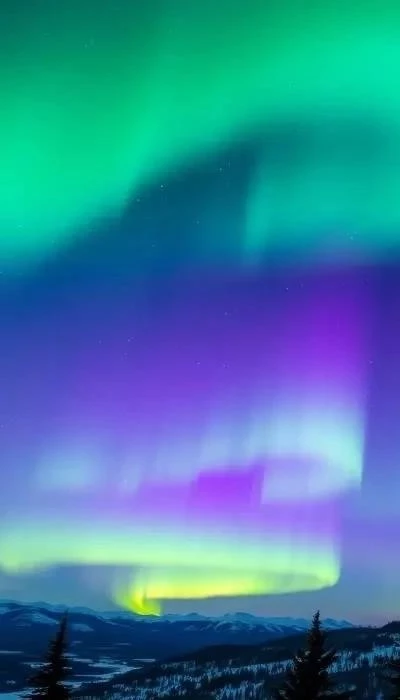 Цвет северного сияния зависит от типа газа, с которым сталкиваются частицы солнечного ветра, и от высоты, на которой происходят столкновения. Зеленый цвет, наиболее распространенный, возникает при взаимодействии с кислородом на высоте около 100 километров. Красный цвет также возникает при взаимодействии с кислородом, но на большей высоте. Синий и фиолетовый цвета возникают при взаимодействии с азотом.