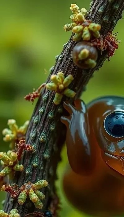 Описание: Эти существа, обитающие в тропических лесах, представляют собой переходную форму между членистоногими и кольчатыми червями. Ареал обитания: Тропические леса Южной Америки, Африки и Австралии. Особенности: Онихофоры обладают уникальной системой дыхания через трахеи и способны выбрасывать липкую жидкость для защиты.