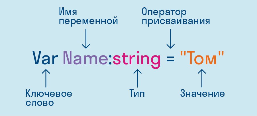 Также при объявлении часто сразу указывается и тип переменной, например строка, число или список. Впрочем, про типы переменных мы еще поговорим подробнее чуть ниже.