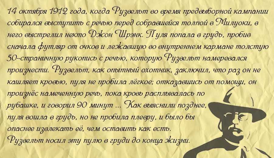 Это не удивительно, ведь биография Рузвельта смахивает на мечту любого 10-летнего мальчишки: обладатель черного пояса по дзюдо, шериф, ковбой, путешественник и охотник, который лично перестрелял половину дичи в Дакоте и вокруг Нью-Йорка.