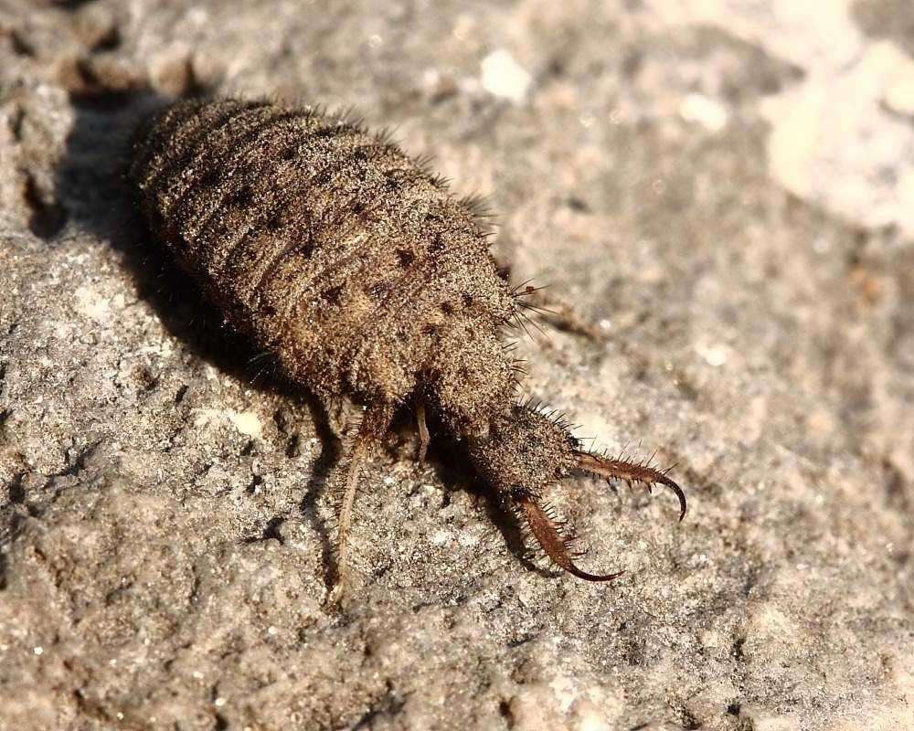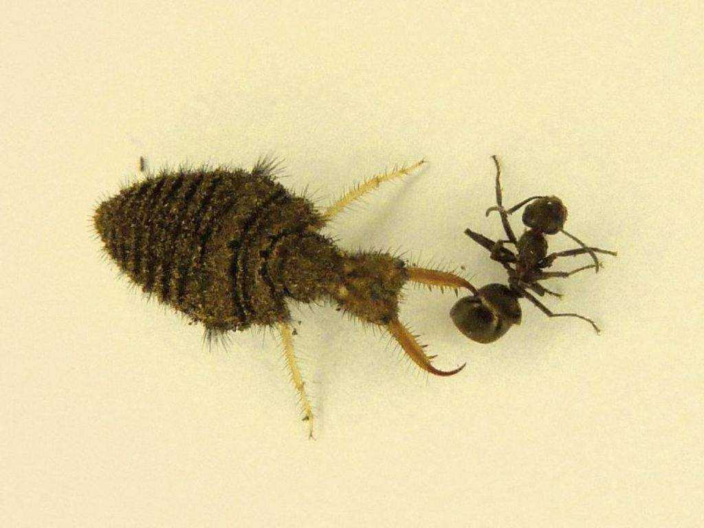 Очень интересны не столько взрослые особи, сколько личинки муравьиного льва. Они сильно напоминают клещей и являются самыми настоящими хищниками. Жизненный цикл муравьиных львов начинается с кладки яиц, отложенных самкой в песок. Затем появляются личинки и развиваются до размера 12 мм в длину и 6 мм в ширину. Тело личинки довольно объемное и имеет 3 пары ног. Существо имеет плоскую, большую голову квадратной формы, на которой находятся сильные челюсти. Специальные каналы в челюстях личинки содержат ядовитое вещество, которое хищник при охоте впрыскивает в жертву.