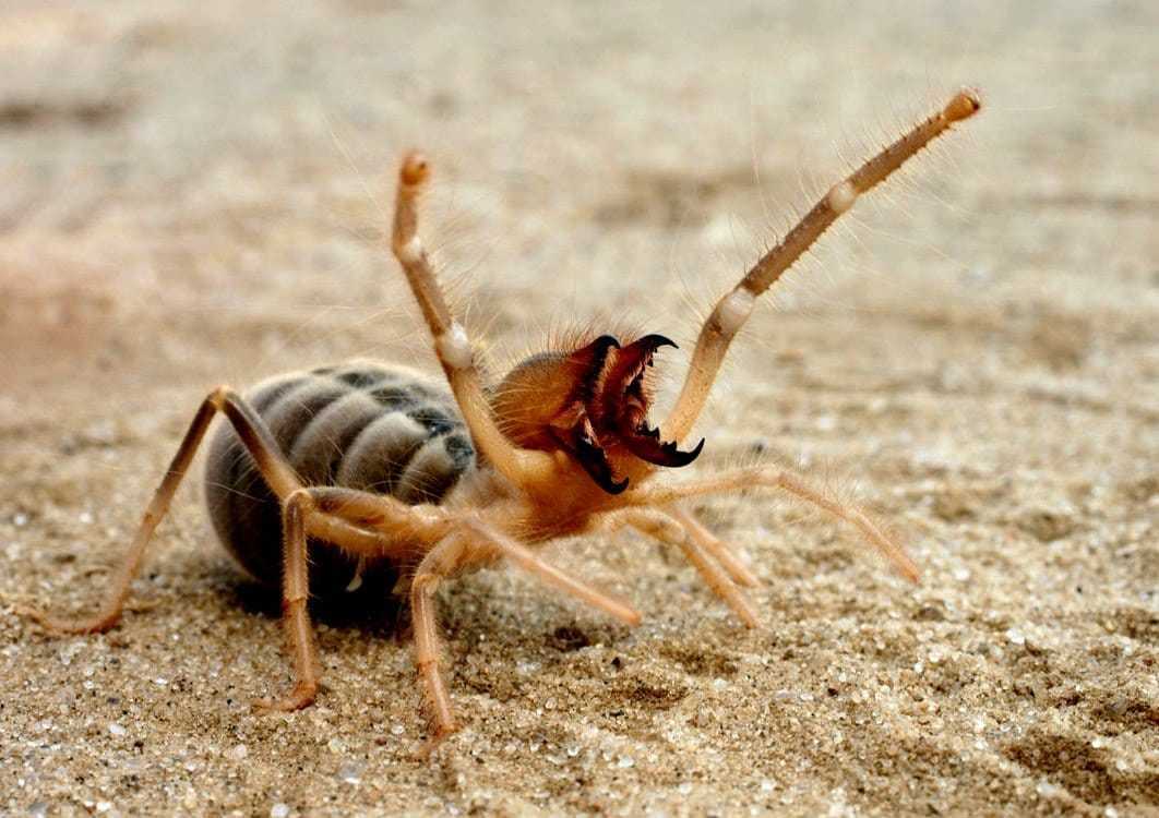 У этого насекомого огромное количество прозвищ, но самые распространенные сольпуга или верблюжий паук. Поведение у сольпуги непредсказуемое. Внешне они очень похожи на пауков, но таковыми не являются. В своем теле они сочетают как примитивные черты, так и самые развитые среди паукообразных.