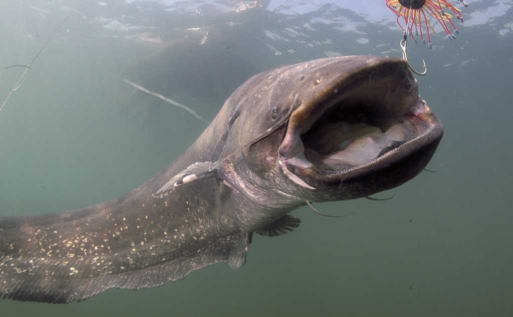 Эти сомы-людоеды, обитающих в речных водах, наводят ужас на всех. Понятно, кому хочется оказаться жертвой гигантской рыбины устрашающих размеров: вес его достигает 170 кг, а длина тела – 2 м.