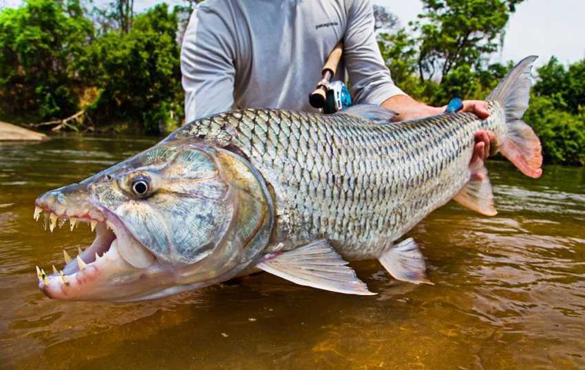 Известна рыба-тигр и под наименованием голиаф. Название хищника вполне оправданно: любители опасной рыбалки вылавливали экземпляры, достигающие в длину 1,3-1,5 м, весом около 50-70 кг. Охотиться на такую «махину», как говорят бывалые рыболовы, нужно с акульими снастями.